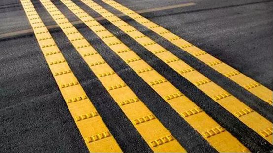 第1種是震蕩標線——這種交通標線通常設(shè)置在事故高發(fā)路段,如彎道和路面收窄的下坡路段,一般由多條醒目的白色或黃色平行實線構(gòu)成。通過印刻在減速標線上的小凸起,使駕駛員駕車通過時感受到強烈震感和聲響,從而迫使其降低到安全車速。以后在高速遇到一定要記得把車速降下來啊。